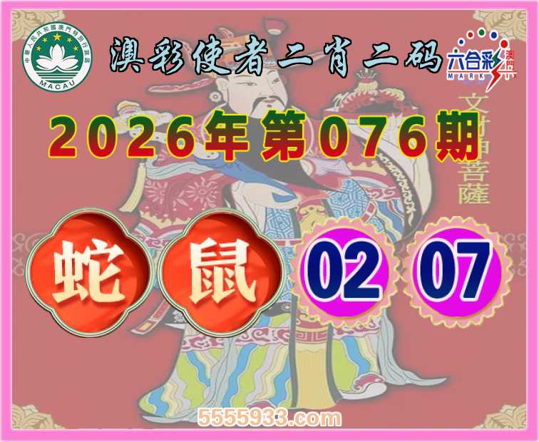077期:【澳彩使者】 二肖二码